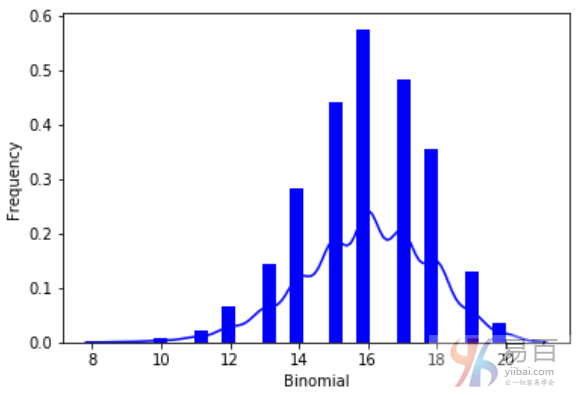 我们使用具有内置函数的seaborn python库来创建这样的概率分布图。 此外,scipy软件包有助于创建二项分布。