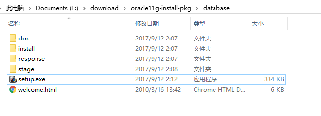 下载完成后,将下载的文件解压缩到一个空文件夹中(例如:e:\download\oracle11g-install-pkg\database),如下所示: