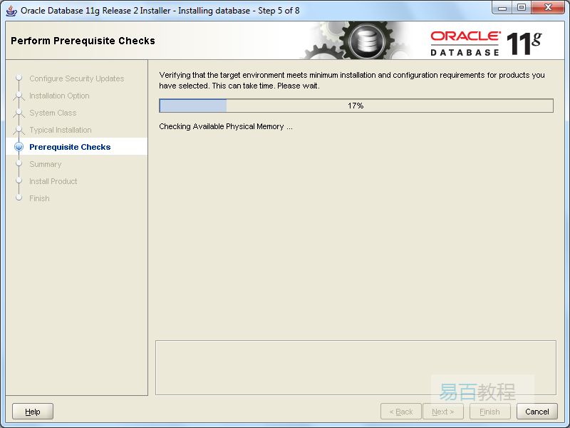 在此步骤中,oracle将在安装oracle数据库组件之前执行先决条件检查。