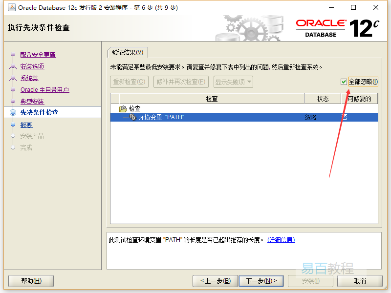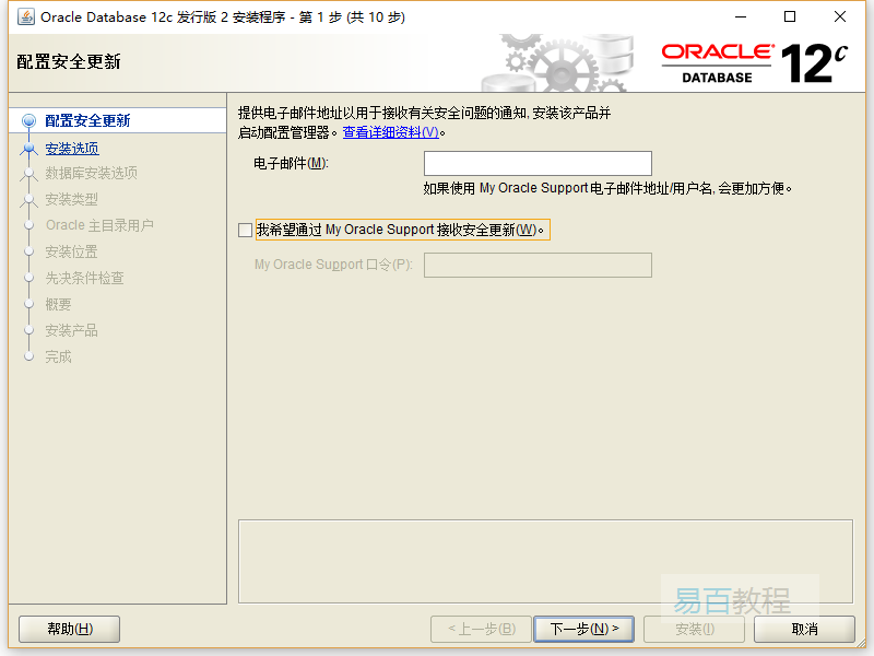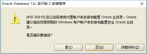 因为没有提供电子邮件地址,oracle数据库安装程序会确认它,只需要单击否按钮继续。
