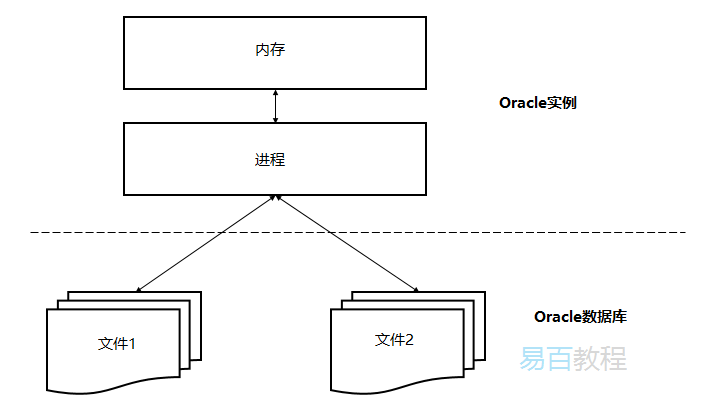 在这种体系结构中,oracle数据库服务器包括两个主要部分:文件(oracle数据库)和内存(oracle实例)。
