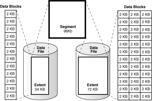 - 段(segments):段是分配用于存储用户对象(例如表或索引)的一组范围。