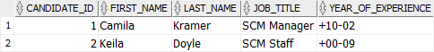 在此表中,有一个year_of_experience列,其数据类型为interval year to month。