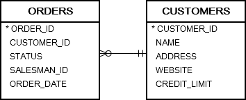 请参阅示例数据库中的以下customers和orders表,它们的er图所下所示: