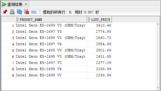 如果使用any运算符将一个值与子查询返回的结果集进行比较,则oracle使用exists运算符将查询转换为等效的查询,而不使用any运算符。 例如,以下语句返回列表价格大于类别编号:1中产品的任何标价的所有产品: