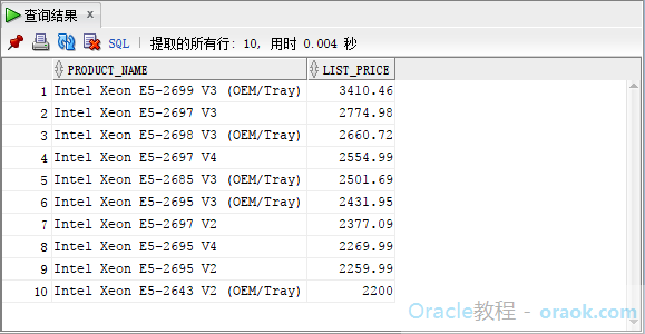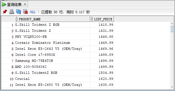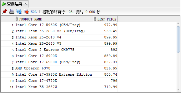 以下语句返回列表价格大于或等于2200的cpu产品: