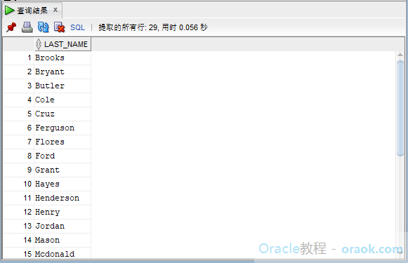在本教程中,您学习了如何使用oracle intersect运算符来比较两个查询,并返回两个查询输出的不同行。